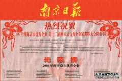 4月30日,南京市人民政府在市委禮堂召開表彰大會, 23家企業(yè)被授予2006年度南京市優(yōu)秀企業(yè)稱號。 該獎項每兩年評選一次,旨在表彰在南京市發(fā)展和經(jīng)濟建設(shè)中做出突出貢獻的企業(yè)。市委...